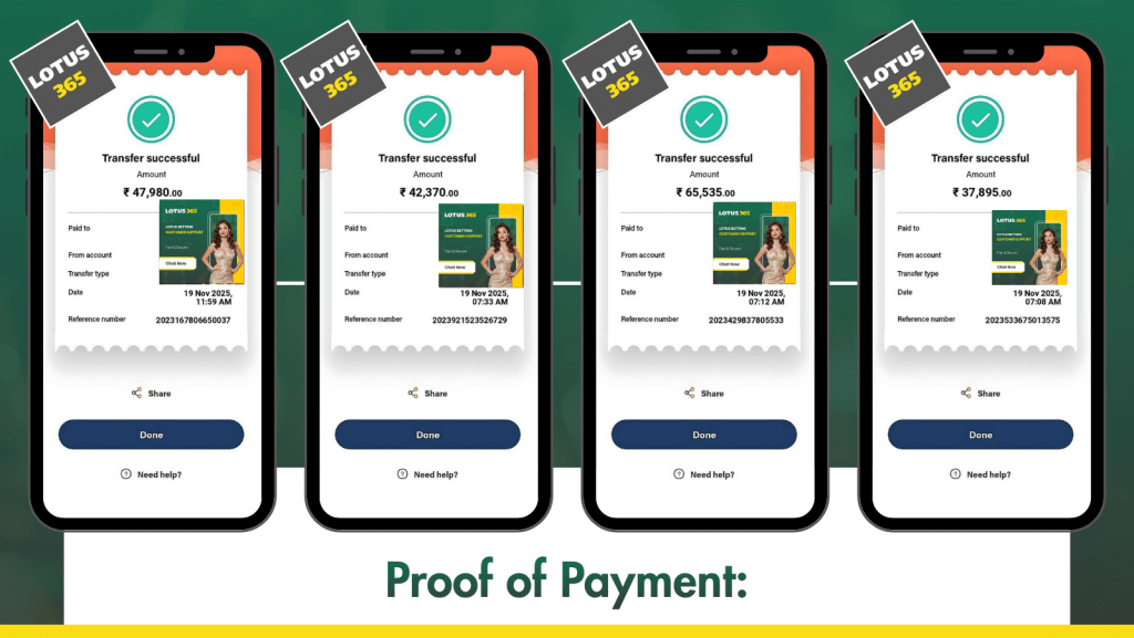 If you notice any delays or discrepancies, contact the Lotus365 support team immediately. Provide your transaction reference number and relevant details to resolve issues quickly. Our support team is available 24/7 to assist with payment verification, ensuring your transactions are secure, transparent, and hassle-free. Track and confirm your withdrawals confidently with Lotus365 for a seamless betting experience.